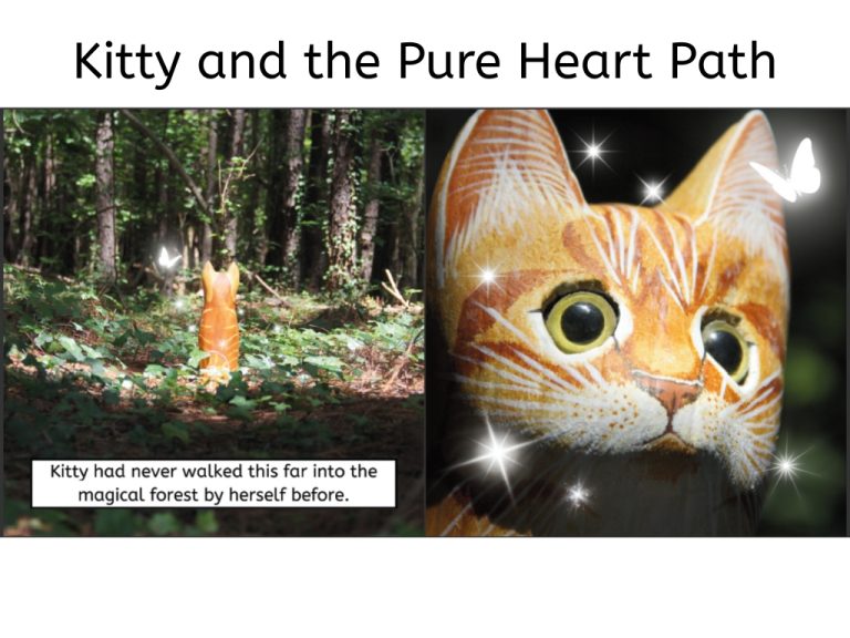 Kitty is very special. She is kind, thoughtful, and friendly. She even has sparkles all around her…but she doesn’t know why. This makes her feel different from everyone else. Kitty follows the path into the magical forest looking for an answer. Along the way, she is guided by Owlie, Egret, and finally, the mysterious Ancestor Cat. Follow the Pure Heart Path with Kitty to find out why she has sparkles and why it’s okay to be different!